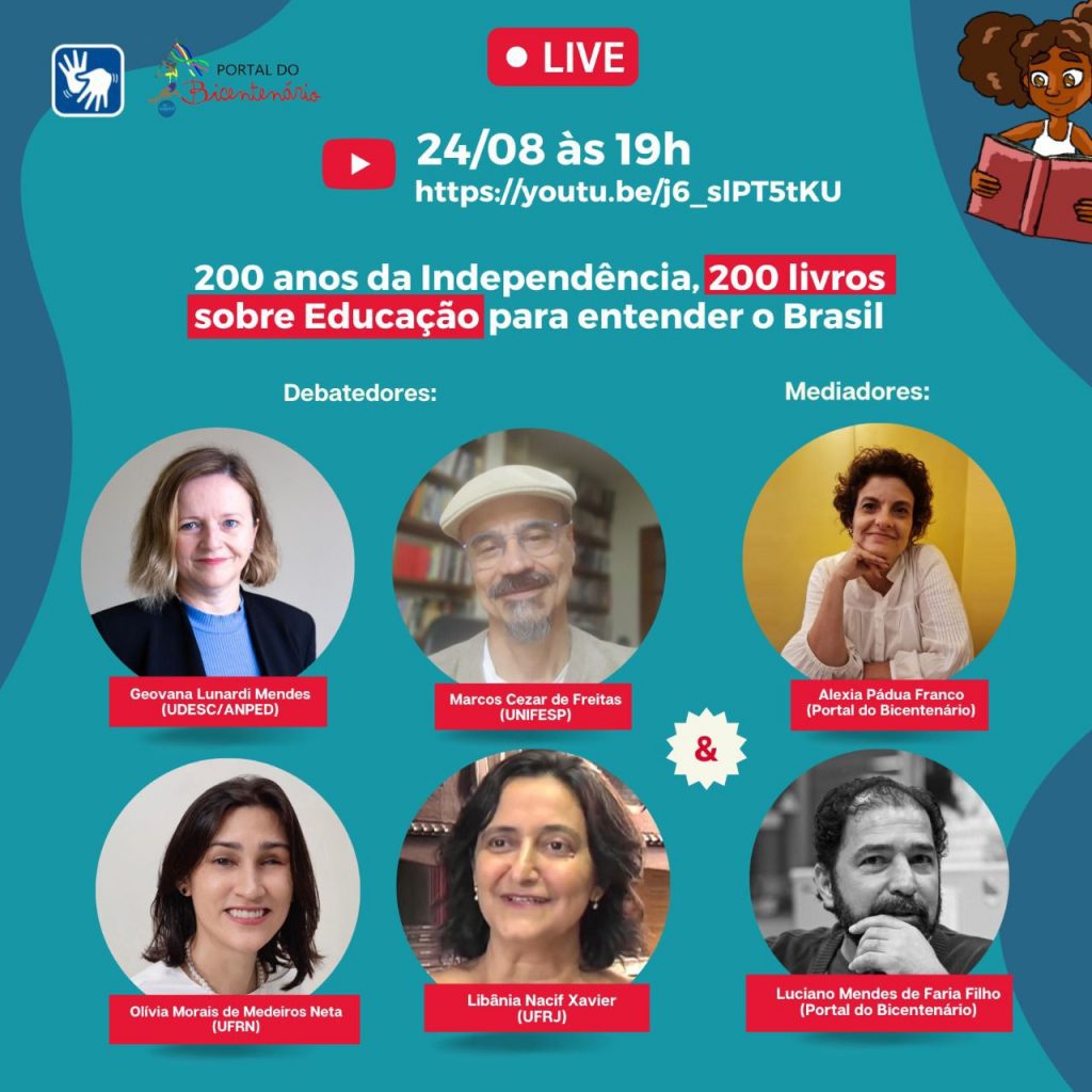 Live de lançamento dos resultados da enquete 200 anos da Independência, 200 livros sobre EDUCAÇÃO para entender o Brasil.